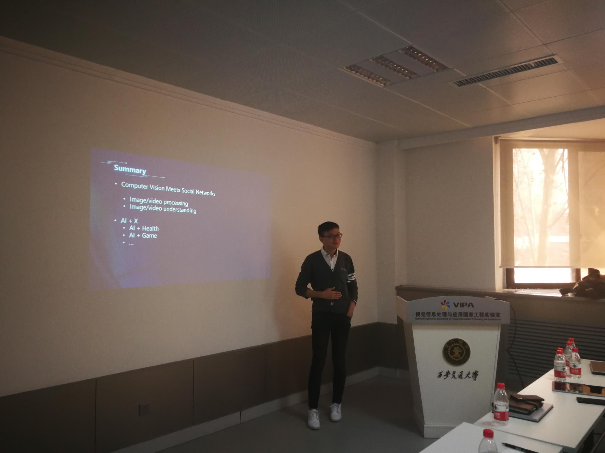 人工智能与机器人研究所(以下简称人机所)邀请腾讯AI Lab访问学者、美国罗彻斯特大学的罗杰波教授和腾讯AI LAB计算机视觉中心专家研究员马林博士分别做了题为“Computer Vision++ , The Next Step Towards Big AI”和“Computer Vision Meets Social Network”的学术报告。马林博士还对腾讯AI LAB及其计算机视觉中心研究方向做了简单介绍。报告会由孙宏滨教授主持,罗杰波教授和马林博士在报告中分别介绍了当前在计算机视觉领域的最新进展,并就相关热点问题与参会师生进行了热烈地讨论与交流。