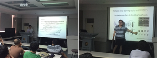 6月26日下午,人机所视觉计算组博士生陈大鹏、刘园柳在人机所324会议室为研究生分享他们参与2015届CVPR5会议的所见所闻。
