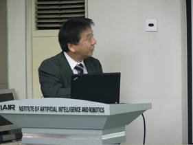 2014年11月19日下午,应人工智能与机器人研究所辛景民老师邀请,日本东京理科大学Mizoguchi Hiroshi教授和Hasegawa Mikio副教授来人工智能与机器人研究所访问,并在人机所会议室为人机所师生做了学术报告,介绍他们当前的研究工作,与老师同学进行了讨论。