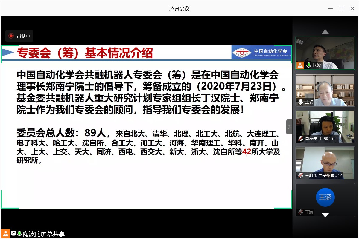 2020年7月23日下午,中国自动化学会共融机器人专业委员会(下称“专委会”)成立大会,通过网络会议形式成功召开。中国自动化学会会士、副理事长王成红研究员、中国自动化学会张楠秘书长以及来自清华大学、北京大学、上海交通大学、国防科技大学、华中科技大学、哈尔滨工业大学、禁漫天堂下载