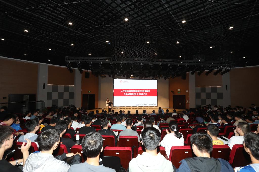 、钱学森学院、未来技术学院的同学表示热烈的欢迎!辛院长讲述了交大人工智能与机器人研究所的发展历程、办学特色,对学院概况、学院文化、科研平台、学术研究等方面进行详细的介绍,并对学院人才培养模式、培养方案进行讲解。