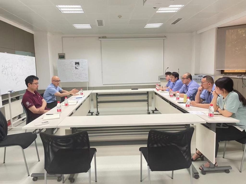逸夫科学馆会议室,人工智能与机器人研究所(以下简称人机所)兰旭光教授团队与来访的中国飞行试验研究院(以下简称试飞院)方威高级工程师等一行五人进行了学术上的分享和交流。