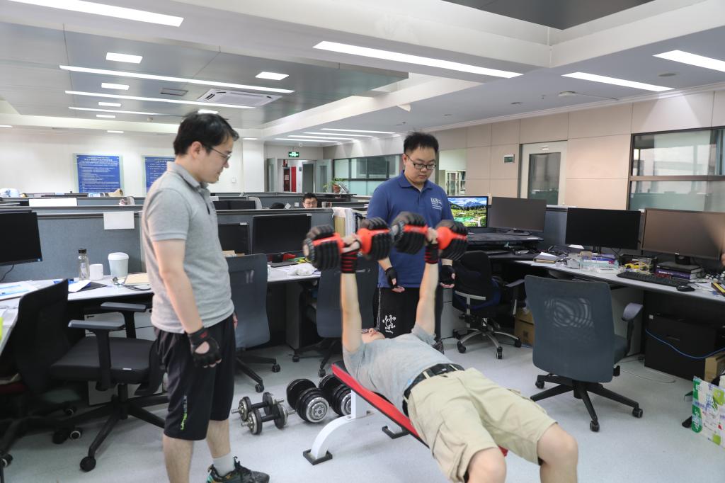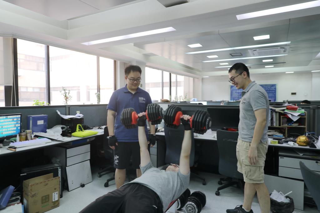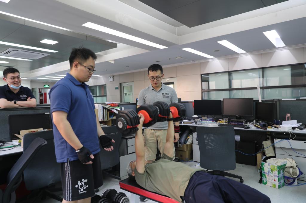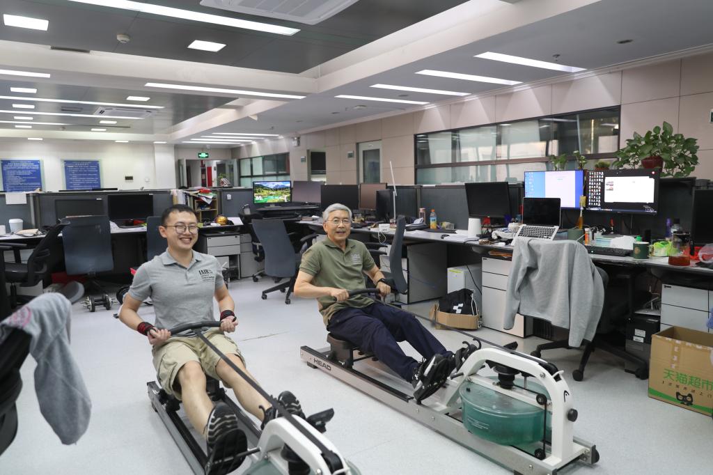,随处都能看到体育健身器材,工位旁摆放着健腹轮、划船机、哑铃等。在郑院士的团队里,“体育达人”层出不穷。“没事推两组?”是团队师生打招呼“常用语”,意思是要么卧推哑铃,要么站推健腹轮,一组12个。他们经常在工作学习间隙自发组织一场小型PK,参赛“选手”铆足劲把动作做标准,围观群众要么拍手称赞,要么也加入比赛。禁漫天堂下载