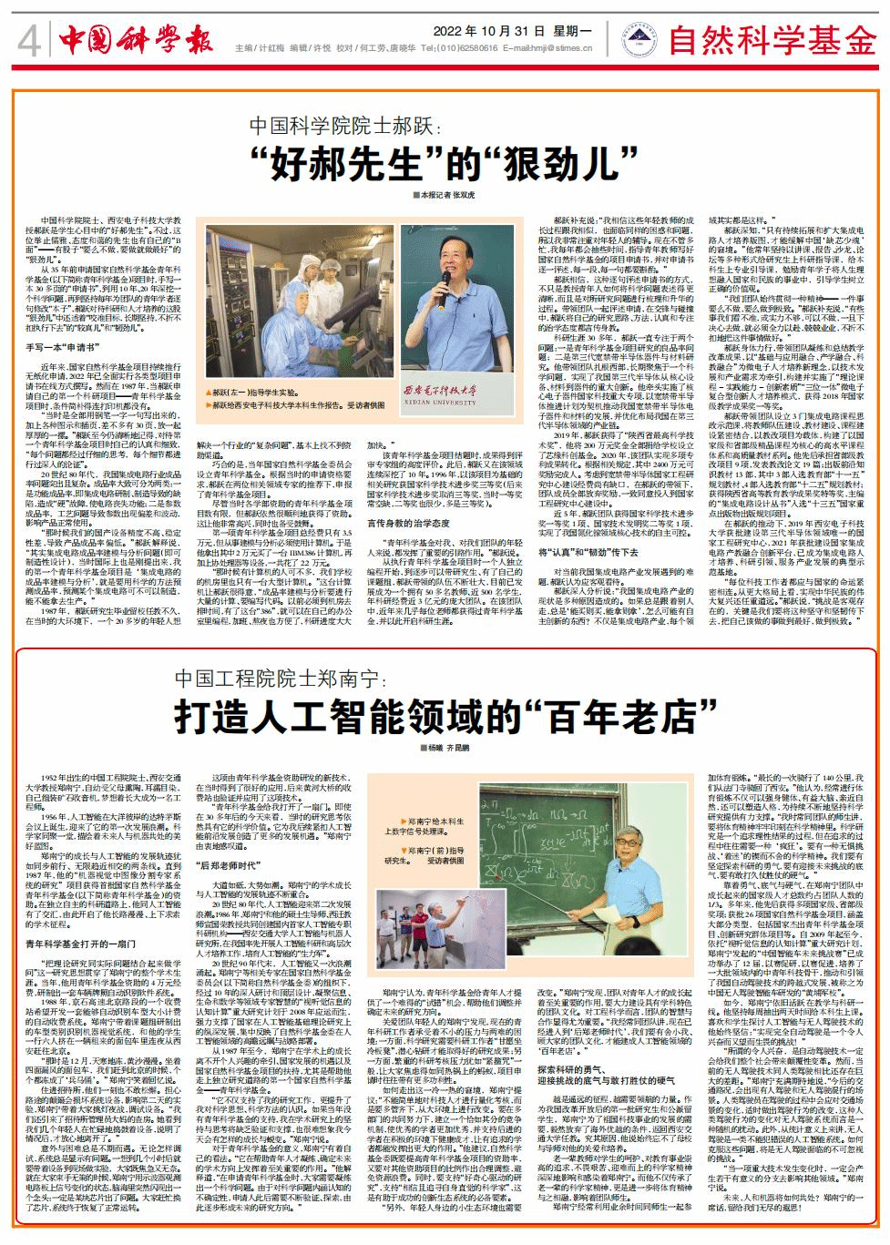 郑南宁认为,青年科学基金给青年人才提供了一个难得的“试错”机会,帮助他们调整并确定未来的研究方向。