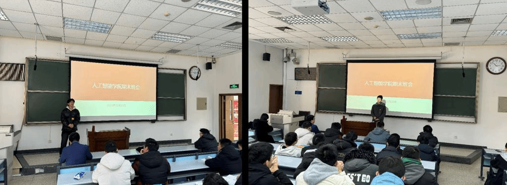 辅导员洪苏涵就诚信考试相关问题与同学们分享。班主任武佳懿老师、陈仕韬老师与同学们进行了答疑互动,并分别组织人工智能2301班、2302班建立期末学习小组。小组同学协调行动进行知识讨论、结伴自习、交流心得等,在学习上共同进步、不让任何一位同学掉队。
