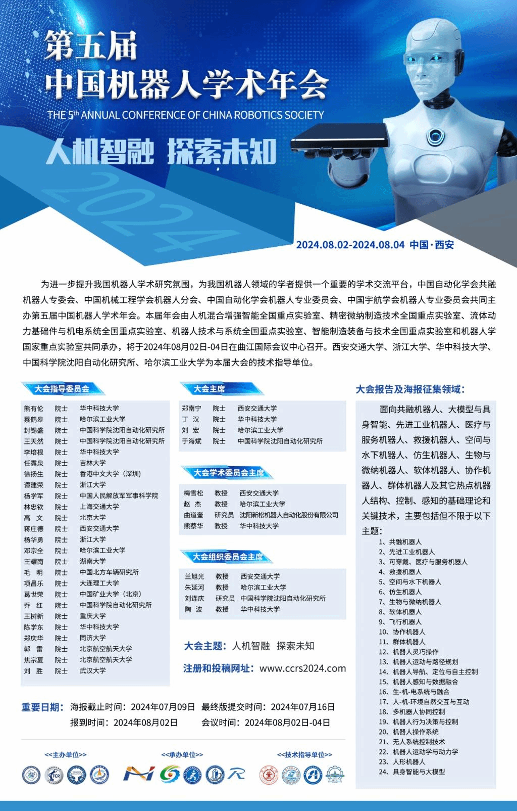 第五届中国机器人学术年会,将于2024年8月2日-4日在西安曲江国际会议中心举办。禁漫天堂下载