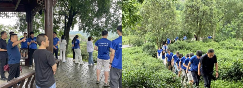 7月15日上午,实践队来到了被誉为“中国十大魅力茶乡”的宁强县玉皇观千山茶园。千山茶园位于汉江源头,北依秦岭,南枕巴山,境内玉带河、嘉陵江贯穿其中,层峦叠嶂,郁郁葱葱。在千山茶园中,实践队员既感受到了世外桃源般郁郁葱葱的青山绿水,也领略了宁强的茶文化魅力,并赞叹于宁强以茶文化为依托,结合现代潮流形式,创新出的“星空茶宿”、“青云茶室”、“火车清吧”等丰富多彩的休闲娱乐项目。在清晨的水汽和朝阳中,千山茶园以一种蓬勃向上的生机让实践队员感受到如今蓬勃发展、百花齐放的乡村文化建设,令实践队员流连忘返。