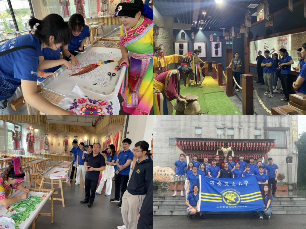 随后,实践队前往羌族文化产业博览园和羌绣非遗文化产业园感受宁强独具特色的羌族文化。在博物馆中,实践队员透过神秘的释比面具和傩戏文化,感受到了羌族文化跨越时空的历史厚重感。在羌绣产业园中,实践队员亦被羌族先民们用勤劳和智慧创造的羌绣深深震撼。在羌绣绣娘们的热情指导下,实践队员也跃跃欲试,亲身体验羌绣的魅力。实践队员既了解到了羌族人民的传奇文化和智慧结晶,也感叹于羌族文化的知名度还不够广泛,队员们纷纷表示要积极向身边人介绍羌族文化。