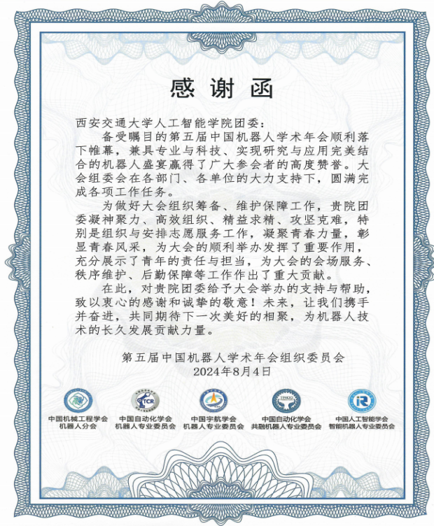 团委延续人工智能与机器人研究所三十多年“研究生为主组织承办国际会议”的育人文化实践,凭借出色的组织能力和志愿者们的团结付出,学院团委及学生副书记伍虹颖荣获“优秀志愿者组织奖”,团委多名成员获得“杰出志愿者”、“优秀志愿者”称号。这一殊荣不仅是对禁漫天堂下载