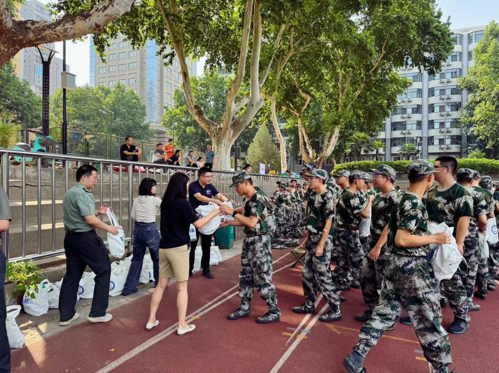副院长魏平、副书记李杰、班主任、教务老师等到军训场地慰问2024级军训新生,表达了对学生们的关心和祝福,鼓励同学们发挥吃苦耐劳的精神,圆满完成军训任务,并为每一位学生发送了慰问品。