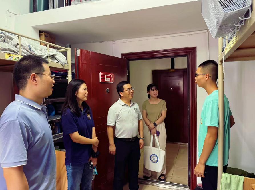 执行院长辛景民、副书记李杰,以及新生班主任陈炜煌、党路娟,教学秘书孙艺璇共同走走访新生宿舍,慰问新生入住情况,与同学们进行深入交流,对同学们关心的问题进行答疑解惑,为新生送去关怀。