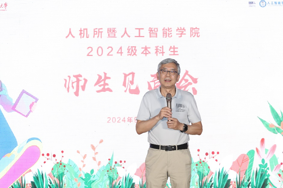 全体教师与2024级本科生在南洋酒店玉兰花园草坪上召开了一次别开生面的师生见面会,学院120余名师生参加。会议还特别邀请北京大学人工智能研究院査红彬教授、我校钱学森书院院务主任田博、网络信息中心副主任刘俊等老师参会,学院党委副书记李杰主持会议。