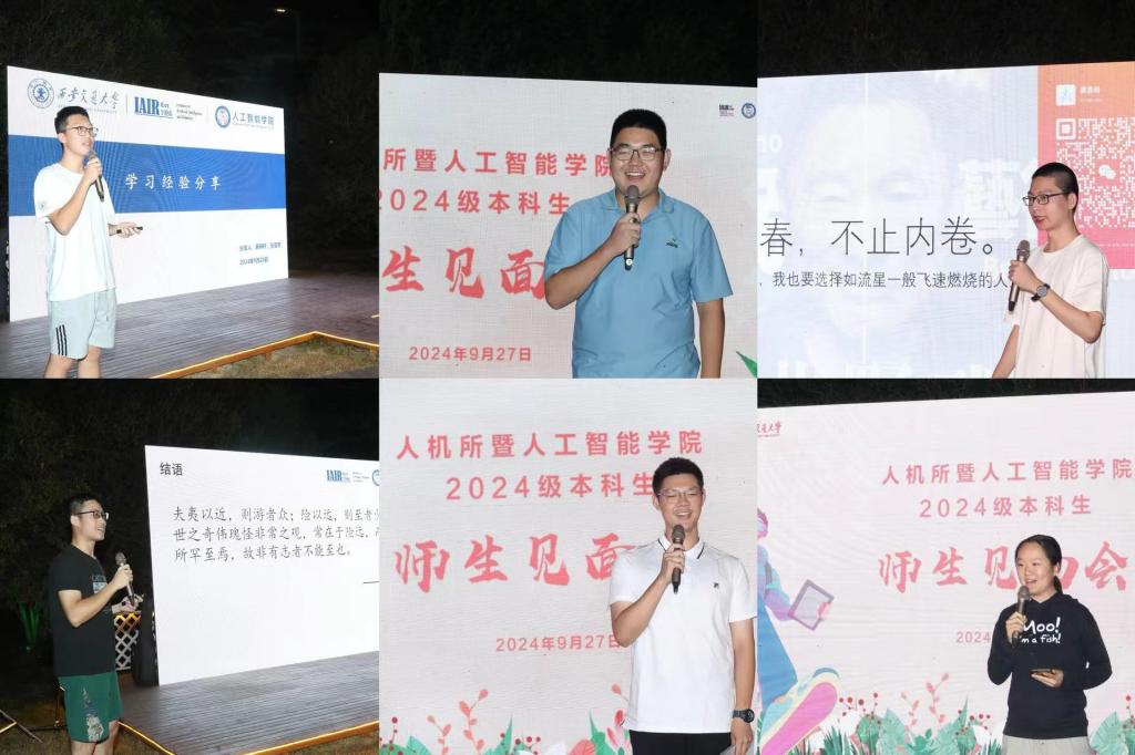 人工智能试验班的蒋梓轩、张亚东、龚易明学长分享了他们在校园学习、科研、创业等方面的不同经验,24级新生肖馨桐、闫涵、张佳器谈了他们进入大学生活后军训、学习、班级服务等方面的感受。