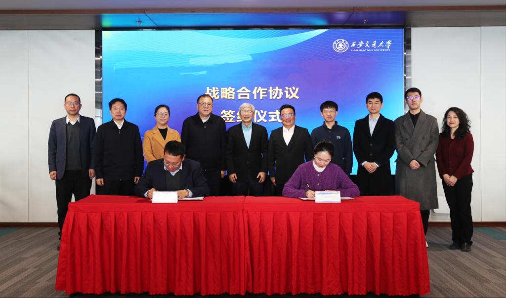 西安交大科研院常务副院长邵金友、上海人工智能实验室学术合作中心负责人陈丽代表双方签署战略合作协议。