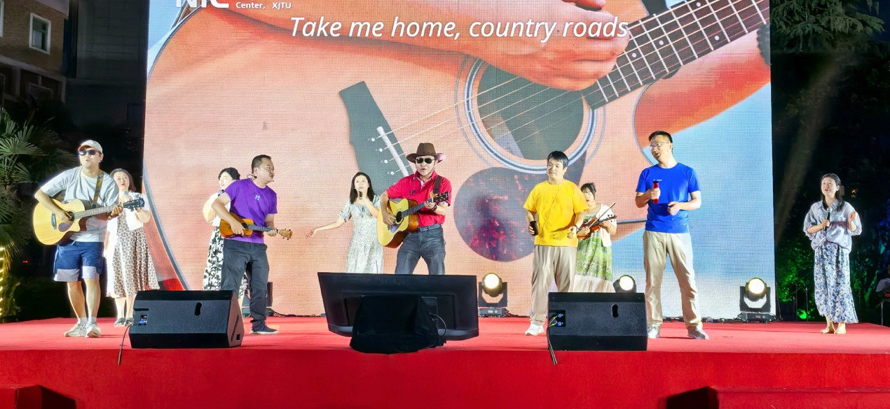 网信中心锁志海主任等老师倾情演唱英文金曲《Take Me Home, Country Roads》,熟悉而温暖的旋律唤起了在场毕业生对校园时光的深深眷恋。歌曲结束后,现场掌声经久不息,观众热情高涨,纷纷呼喊返场。应大家的热情期待,网信中心老师们再次登台献唱歌曲《朋友》,并惊喜呈现了他们精心拍摄制作的MV,展现了人机所师生之间亦师亦友的关系,更是让现场气氛温馨而感人。