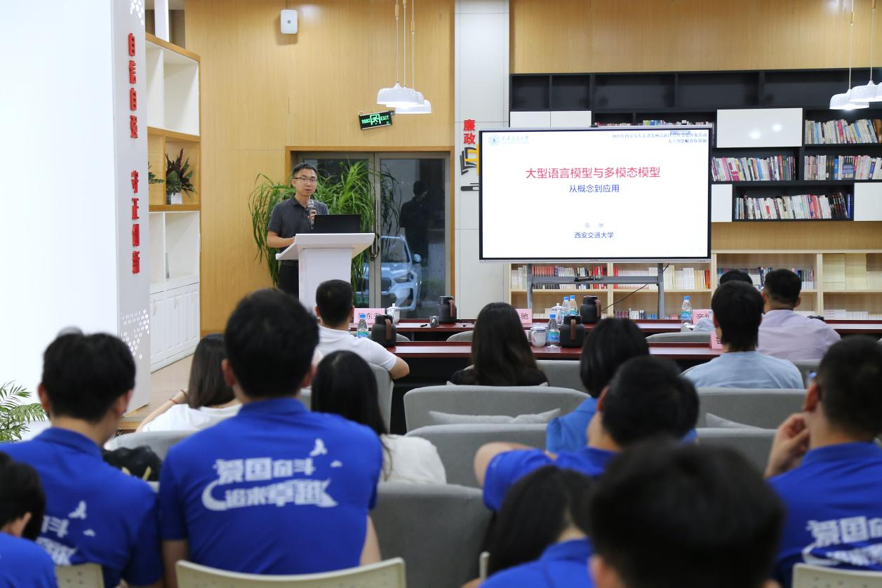 团委书记张驰副教授则以前沿视角,带领大家深入探讨了当前热门的大型语言模型与多模态模型,并详细分析了模型在实际场景中的应用,展示了科技如何重塑日常生活。张驰副教授的精彩讲解不仅将复杂技术化繁为简,更激发了实践队员们对未来前景的热烈思考。