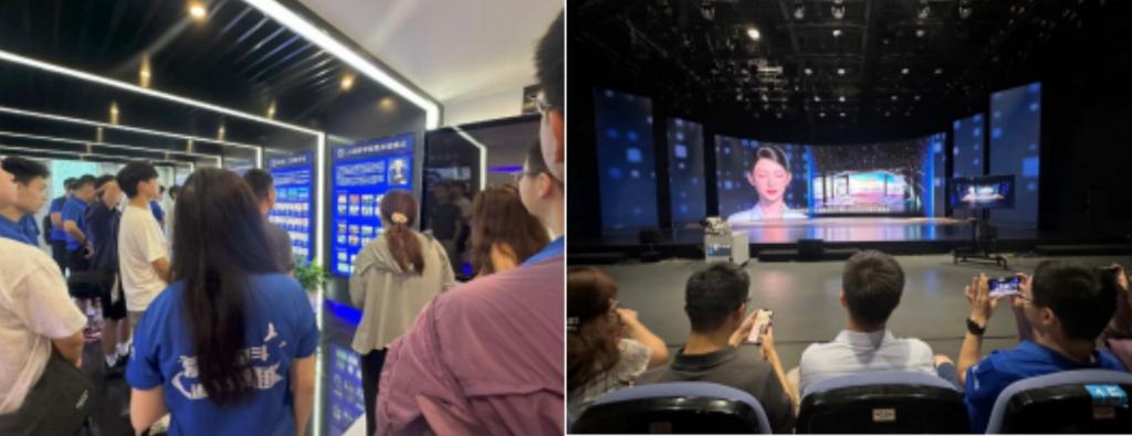 随后,团队前往苏州广播电视总台新大楼(“靴子楼”)参访,深入考察现代传媒技术在超高清制播、XR 沉浸式内容生产及智慧融媒运营等方面的创新实践,切实感受人工智能与传媒产业深度融合所带来的变革动能与发展潜力。