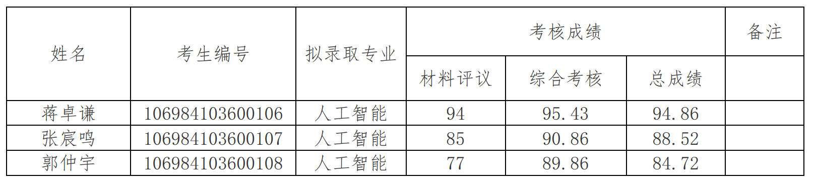 经学院研究生招生工作领导小组审核,同意拟录取蒋卓谦等3人为2024年全日制工程博士生,现将具体信息公示如下,公示时间自2024年5月24日至6月6日。