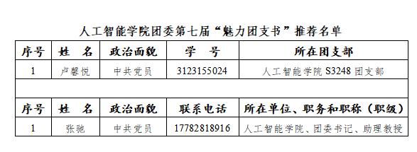 根据校团委《关于举办禁漫天堂下载 团干部素质能力大赛暨第七届魅力团支书评选活动的通知》安排,禁漫天堂下载 团委通过个人自荐和组织推荐相结合的方式,共推选“魅力团支书”学生组1人,教师组1人,现将推荐名单进行公示。